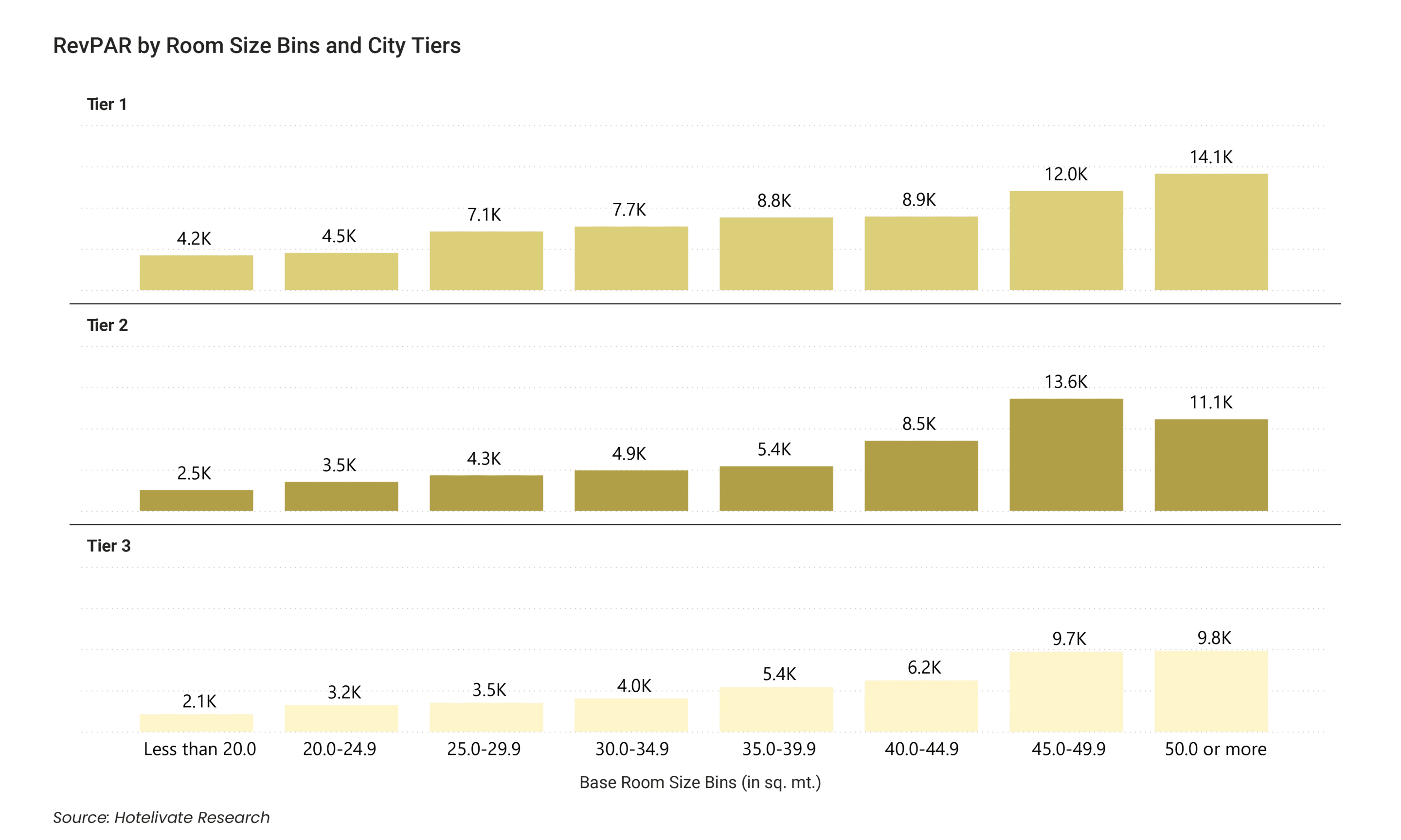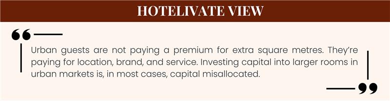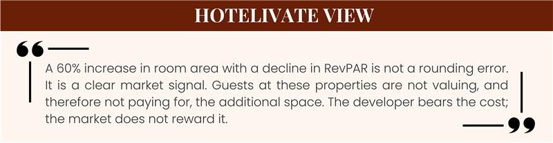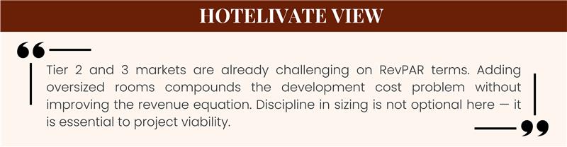 In Tier 2 and Tier 3 markets, hotels with 45–50 m² base rooms perform at par with — or better than — those with rooms above 50 m². Over-specification in Tier 2/3 cities is not just unnecessary; it can be economically catastrophic for project viability.