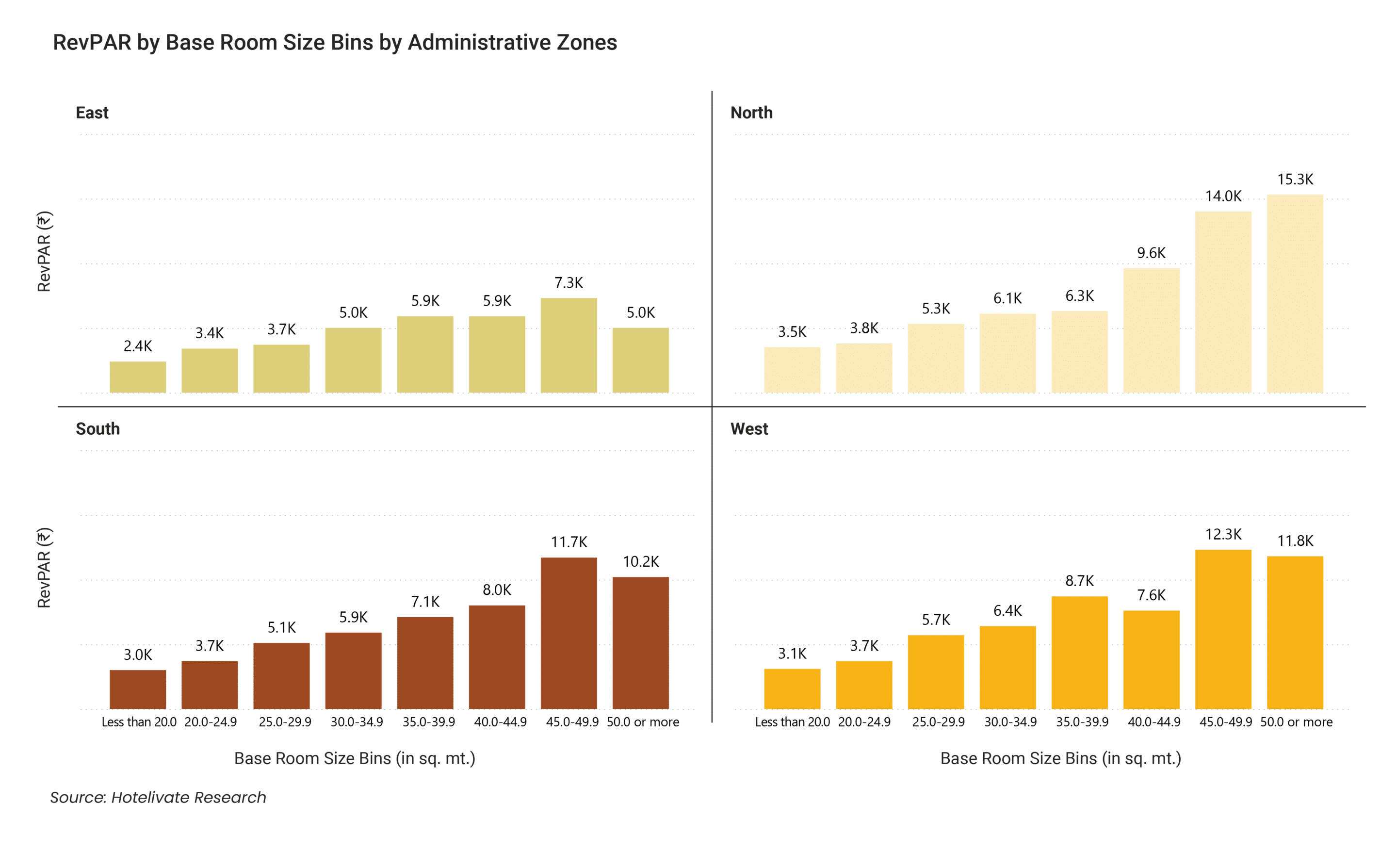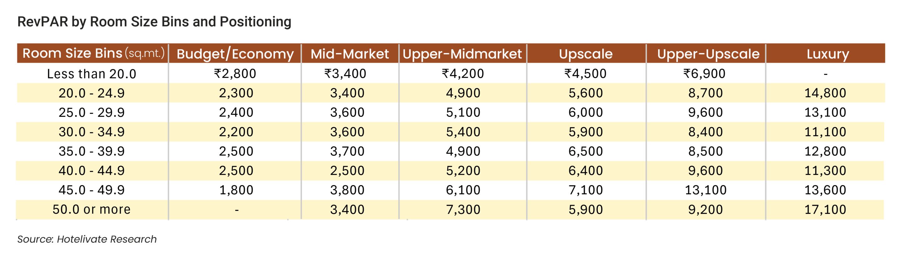 Hotelivate analysed the correlation between base room size and RevPAR across branded hotels in India for 2024/25 — examining the data by location type, administrative zone, brand origin, hotel size, city tier, and positioning.